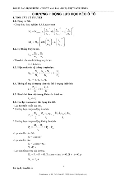 Tổng hợp tóm tắt các công thức thông dụng liên quan đến ôn thi môn Lý Thuyết Ô Tô . Đầy đủ các dạng bài tập kèm theo giải chi tiết