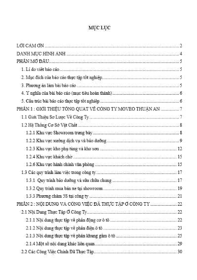 BỘ GIÁO DỤC VÀ ĐÀO TẠO TRƯỜNG ĐẠI HỌC SƯ PHẠM KỸ THUẬT TP.HCM KHOA CƠ KHÍ ĐỘNG LỰC BÁO CÁO THỰC TẬP TỐT NGHIỆP TẠI CÔNG TY TNHH MOVEO THUẬN AN MÃ MÔN HỌC : PRGR432130 GVHD : PGS.TS LÝ VĨNH ĐẠT LỚP : 22145CL4A SVTH : TRẦN NAM KỲ MSSV : 22145187 TP. H CM , Ngày 30 Tháng 0 7 Năm 2025 LỜI CẢM ƠN Sau quãng thời gian đi thực tập trong khoảng hai tháng trong một môi trường làm việc thực tế và có cơ hội cống hiến cho doanh nghiệp cũng như học hỏi và nghiên cứu về công việc sau khi ra trường đối với nghành công nghệ kỹ thuật ô tô thông qua bộ môn Thực tập tốt nghiệp tại Trường Đại học Sư Phạm Kỹ Thuật Thành phố Hồ Chí Minh , em xin gửi một lời cảm ơn sâu sắc nhất đến PGS.TS Lý Vĩnh Đạt là người thầy và là người hướng dẫn chỉ bảo tận tình và công ty TNHH Moveo Thuận An đã cho em cơ hội được trải nghiệm , được làm việc trong môi trường thực tế , chuyên nghiệp và kỉ luật tốt để em dễ dàng định hướng được nghề nghiệp sau khi ra trường . Em biết ơn lòng tận tuỵ và sự nhiệt huyết của thầy Lý Vĩnh Đạt vì sự hướng dẫn nhiệt tình , chi tiết của thầy trong suốt quãng thời gian thực tập, từ lúc nhận tờ giấy giới thiệu đến lúc hoàn thành bài báo cáo thực tập này . Và không chỉ thế thầy còn nhắc nhở chỉ bảo về an toàn trong quá trình thực tập rất cặn kẽ . Em cũng xin gửi lời cảm ơn sâu sắc đến toàn công ty TNHH Moveo Thuận An , cảm ơn các anh kỹ thuẩt viên , cố vấn dịch vụ , trưởng phòng dịch vụ và thủ kho ,…... đã dành thời gian và tâm huyết để hướng dẫn em trong suốt quá trình thực tập để em có thêm nhiều kinh nghiệm , được học hỏi về cách vận hành công ty và quy trình làm việc tại công ty . Trong quá trình thực tập ở đây , em như trở thành một nhân viên của công ty , đôi khi cũng mắc lỗi nhưng nhờ sự nhắc nhở đôn thúc của các anh chị em càng chính chắn , trưởng thành hơn , học được nhiều điều bổ ích , đặc biệt là các dòng xe Skoda , Mitsubishi , để từ đó thúc đẩy em tiến bộ và phát triển hơn trong lĩnh vực ô tô này . Thông qua quá trình thực tập em nhận thấy rằng kiến thức và khả năng của mình vẫn còn nhiều hạn chế và thiếu sót , còn rất nhiều thứ phải học hỏi thêm . Không những vậy , em thấy mình cần phải nắm chắc lý thuyết hơn nữa để có thể áp dụng vào thực tiễn một cách nhuần nhuyễn . Do đó , em rất mong nhận được sự góp ý và chỉ bảo từ thầy và cũng như quý công ty thực tập để em nổ lực hoàn thiện bản thân hơn nữa Trân trọng và