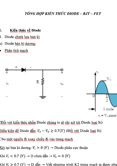 Tên môn học: MẠCH ĐIỆN TỬ 1