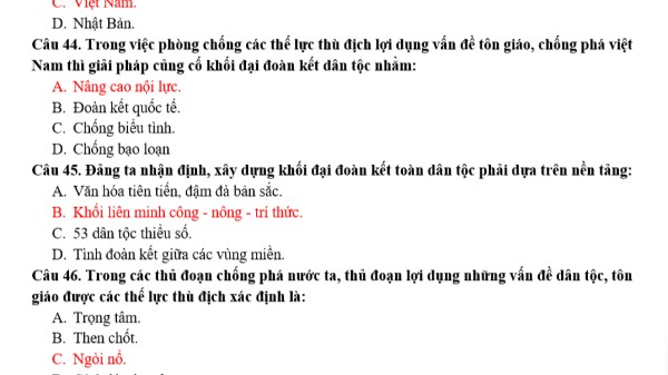 NGÂN HÀNG CÂU HỎI HỌC PHẦN 2 BÀI 1: PHÒNG CHỐNG CHIẾN LƯỢC “DIỄN BIẾN HÒA BÌNH”, BẠO LOẠN LẬT ĐỔ CỦA CÁC THẾ LỰC THÙ ĐỊCH ĐỐI VỚI CÁCH MẠNG VIỆT NAM Câu 1 : Khái niệm "Diễn biến hoà bình" Là chiến lư...