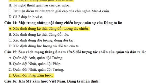 Câu 1: Nội dung GDQP học phần I là những vấn đề cơ bản về: