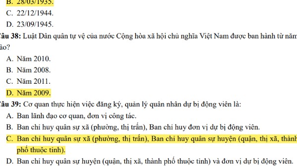 CÂU HỎI ÔN THI KẾT THÚC MÔN GIÁO DỤC QUỐC PHÒNG 1