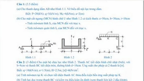Đề thi mẫu - bài giải 23-24, môn cơ học công trình